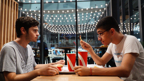 Juan has romantic problems and talks about it over lunch with his friend Matías.