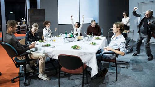 It is election night. Oedipus is on the verge of a massive victory. The country has not known a leader for many years since Laius' death. The ambitions are great. Oedipus wants to create a future, create a new way of life. He also insists, if elected, that the investigation into the death of his predecessor is reopened. In the meanwhile, in the half-empty campaign headquarters, Oedipus is surprised by his family - mother, wife and children - with a dinner. An old incident is thereby brought up. Gradually, Oedipus discovers that his past is very different from what he has always thought. During his research, the pieces of the puzzle fall together. Oedipus tries to control his fate, but discovers that he has been seeing blind all along.