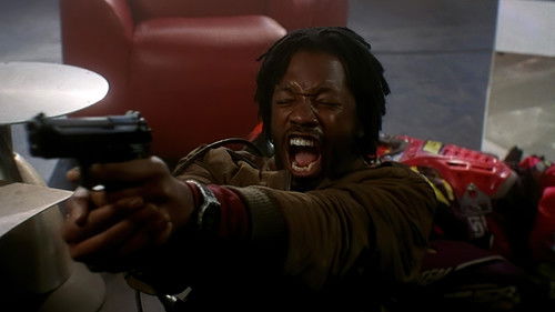 A prototype enhanced human, on the run from Chinese-hired hit men, hooks up with a dread-locked bystander, and the two of them elude their pursuers narrowly each time.