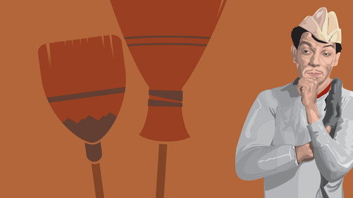 A cheerful sweeper collects garbage dancing, and the maids of the neighborhood get jealous because he invites another woman out.