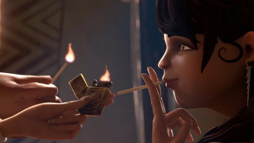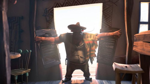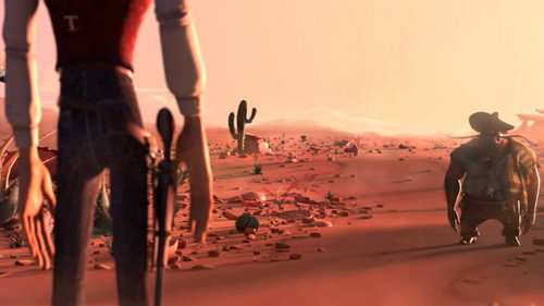 Two desperadoes in the middle of the Mexican desert, fall to the charms of a young barmaid, and use their skills in order to seduce her.