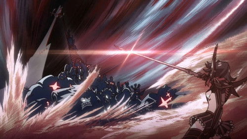 Honnouji Academy is forcefully ruled by the iron-fisted control of its student council and its president, Satsuki Kiryuin. Transfer student, Ryuko Matoi, arrives on campus carrying a giant sword, that is actually half of a scissor. She is looking for the woman who holds the other half of her sword who killed her father. It is said that Satsuki Kiryuin knows the identity of the killer but when Ryuko confronts her she is beaten by the student council and their powerful "Goku Uniforms" whom she cannot match in strength. However, once Ryuko receives her own "Kamui" by the name of Senketsu, the odds are lifted in her favor.
