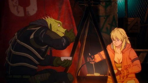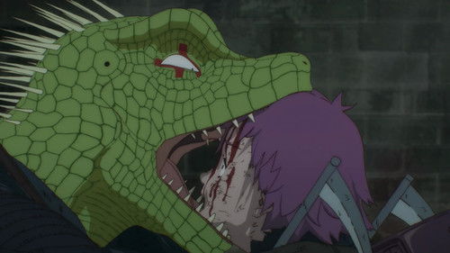 Amnesiac Caiman seeks to undo his lizard head curse by killing the sorcerer responsible, with his friend Nikaido's help. In the Hole, that's a threat.